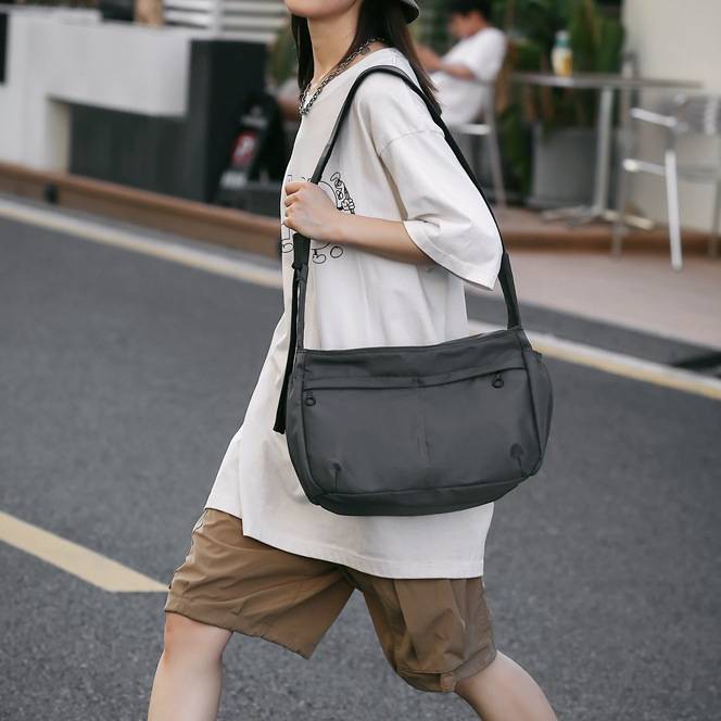 軽量 ショルダーバッグ ナイロンバッグ 大容量 レディース カジュアル 斜めがけ シンプル 肩掛けバッグ スポーティ 韓国風 ストリートコーデ 春夏 秋冬 通勤通学 ブラック グレー オレンジ 3色展開 K-B0241