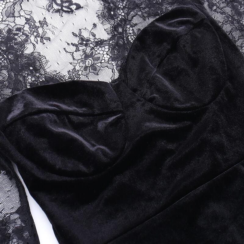 商品名:ベロア ロングドレス レーススリーブ シースルー エレガントドレス