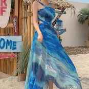 柔らかなシフォン生地が軽やかに揺れ、夏の旅行やビーチ、リゾートシーンにもぴったり。