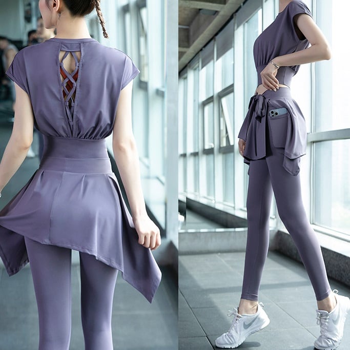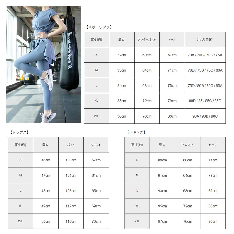 スカート付きレギンス、スポーツブラの3点セット!