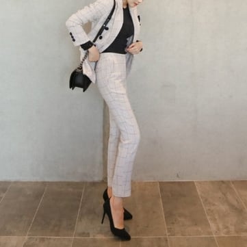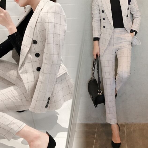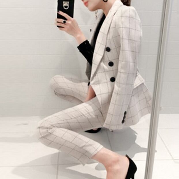パンツスーツ レディース 春夏 秋冬 春 夏 秋 冬 スーツ チェック柄 上下セット 2点セット ジャケット パンツ セットアップ チェック柄スーツ タイト アンクル丈 パンツスーツ オフィス クロップド丈 OL オフィスカジュアル 結婚式 パーティー お呼ばれ ベージュ 10代 20代 30代 40代 C-WAW1018
