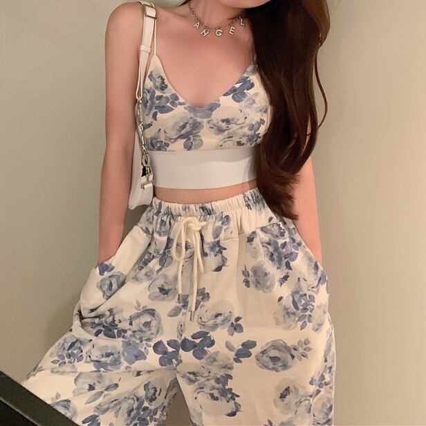 キャミソール パンツ 2点セット レディース 春夏 秋冬 春 夏 秋 冬 ダンスウェア 部屋着 花柄 パンツ ダンス フィットネスウェア ヨガウェア フィットネス ジム ダンスパンツ ヨガパンツ スポーツウェア レギンス フィットネスウェア ヨガウェア C-WAW1033
