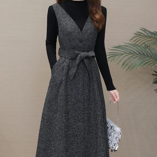セットアップ レディース 春夏 秋冬 春 夏 秋 冬 ワンピース ジャンパースカート ニットトップス 長袖 黒 トップス ノースリーブワンピース ひざ丈 ミディアムワンピース ロング ミモレ丈 ワンピース シンプル ひざ丈ワンピ 2ピース セット カジュアルワンピ グレー ブラック 体型カバー 大人 カジュアル 10代 20代 30代 40代 C-WAW1042