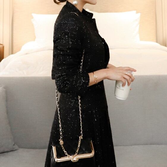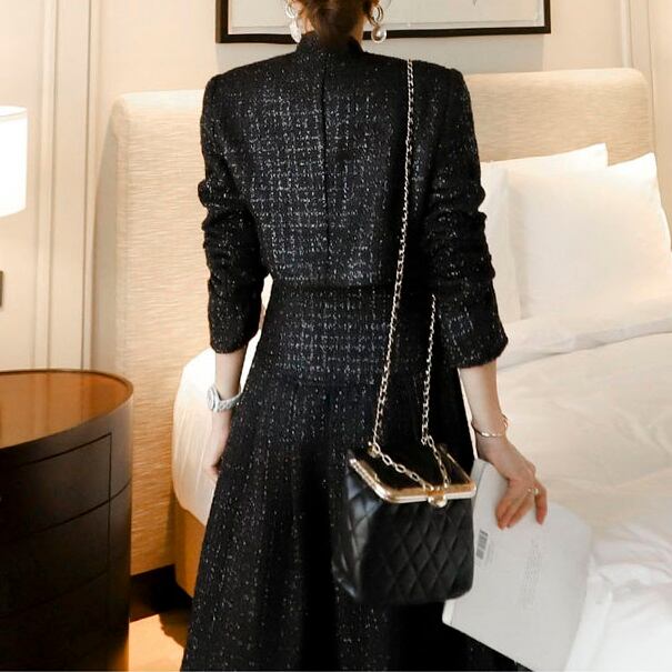気品あるツイード素材が高見えして華やか。