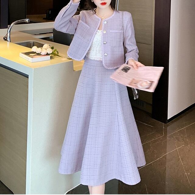 セットアップ レディース 春夏 秋冬 春 夏 秋 冬 黒 ジャケット Aラインスカート スーツ 上下セット 2点セット ツイードジャケット ツイードスーツ スーツスカート フレアスカート 長袖ジャケット ロングスカート 学校行事 スカート ボトムス セットアップ ロング スカートスーツ オフィス スカート マキシカート OL オフィスカジュアル 結婚式 パーティー 卒業式 入学式 卒園式 入園式 お呼ばれ ブラック ライトパープル 10代 20代 30代 40代 C-WAW1071