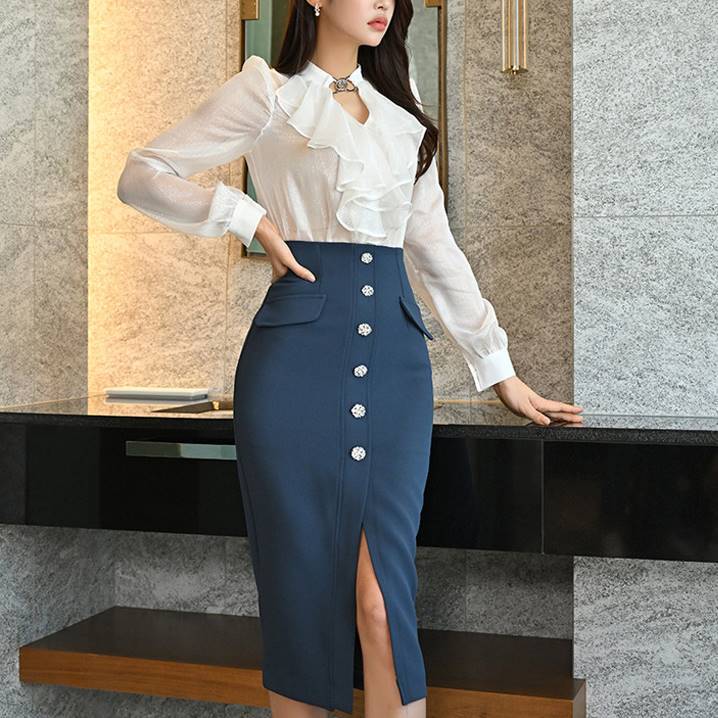 商品名:シースルーブラウス & スリット入り タイトスカート セットアップ