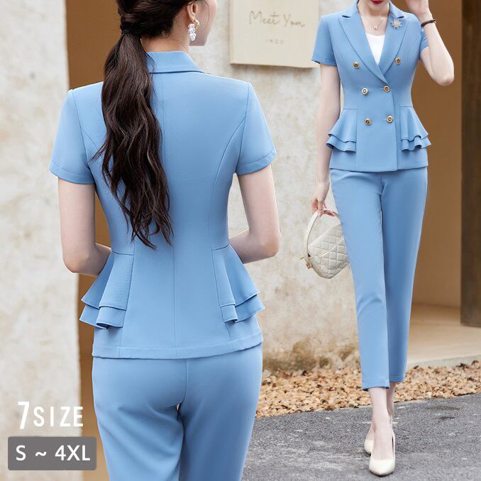 パンツスーツ レディース 春夏 秋冬 春 夏 秋 冬 黒 スーツ 上下セット 2点セット ジャケット パンツ セットアップ ダブルボタン セットアップスーツ 半袖 ダブルスーツ タイト ツーピース ビジネススーツ 金ボタン パンツスーツ 7分丈 レディーススーツ 韓国ファッション 大きいサイズ 韓国 オフィス OL オフィスカジュアル ビジネス 結婚式 パーティー お呼ばれ ブラック ピンク ライトブルー S M L XL 2XL 3XL 4XL 10代 20代 30代 40代 C-WAW1081