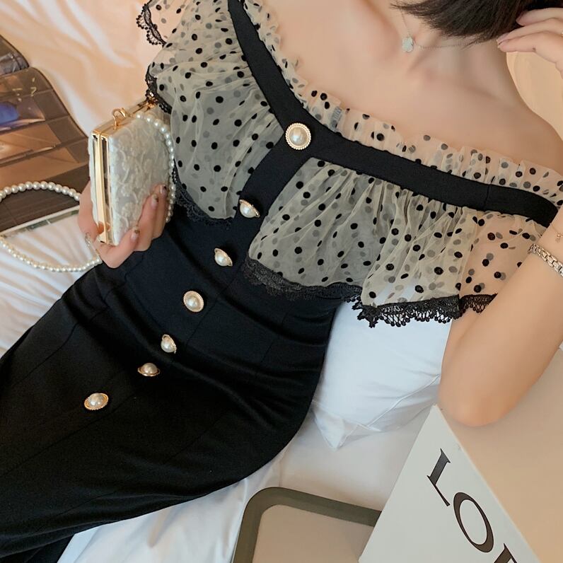 ワンピース レディース 春夏 秋冬 春 夏 秋 冬 黒 オフショルダーワンピース フリル タイトワンピース ミモレワンピース ドレス タイトワンピ タイトドレス ミモレワンピ パーティードレス ドット柄 韓国 デートコーデ お出かけ お呼ばれ ブラック 10代 20代 30代 40代 C-OSS0045