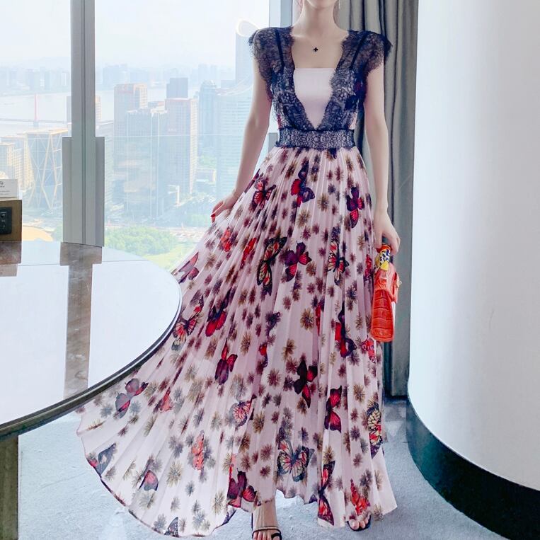 ワンピース レディース 春夏 秋冬 春 夏 秋 冬 花柄 蝶 ノースリーブ レース ドレス 花柄ワンピース マキシワンピース ワンピースドレス フラワー ロング丈ワンピ ドレスワンピース プリーツワンピース ロングワンピース ノースリーブ エレガント ピンク お呼ばれ 結婚式 パーティードレス ノースリーブワンピース 大人 カジュアル 10代 20代 30代 40代 C-OSS0068