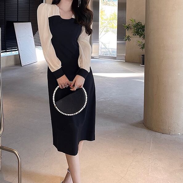 ワンピース レディース 春夏 秋冬 春 夏 秋 冬 長袖 黒ワンピース ドッキングワンピース ドレス ドレスワンピース Aラインワンピース ミディアムワンピース ロング ミモレ丈 ワンピース パフスリーブ ドッキング ひざ丈ワンピ Aライン ブラックワンピース ロングワンピース カジュアルワンピ ブラック キャバドレス キャバ嬢 ナイトドレス デート きれいめ 韓国 ファッション OL オフィスカジュアル 結婚式 パーティー お呼ばれ 10代 20代 30代 40代 C-OSS0080