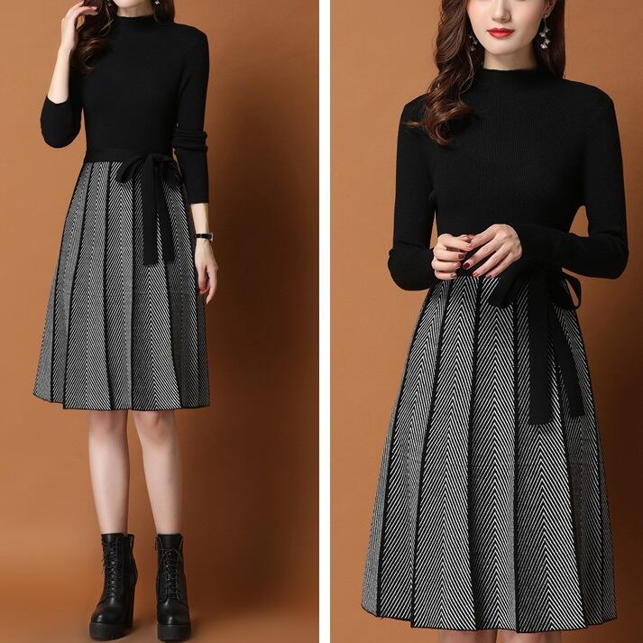 ワンピース レディース 春夏 秋冬 春 夏 秋 冬 長袖 黒ワンピース Aラインワンピース ミディアムワンピース ロング ミモレ丈 ニットワンピース ハイネック シンプル ひざ丈ワンピ Aライン プリーツ ブラックワンピース ロングワンピース カジュアルワンピ ブラック ベージュ ブラウン ネイビー デート きれいめ 韓国 ファッション OL オフィスカジュアル 結婚式 パーティー お呼ばれ 10代 20代 30代 40代 C-OSS0100